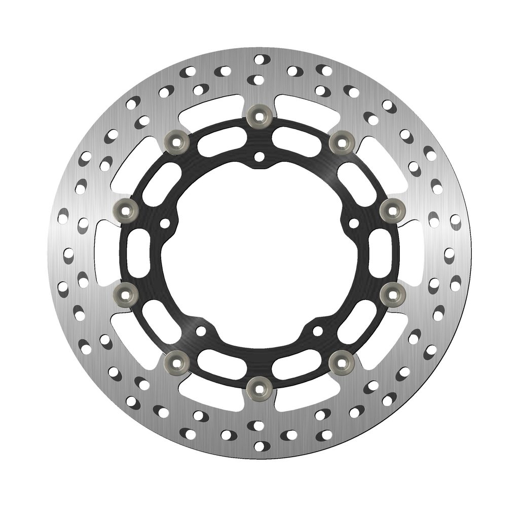 Barva brzdné plochy je výsledkem speciálního tepelného zpracování, které dodává oceli toto charakteristické duhové zbarvení, díky němuž bude váš stroj vynikat mezi ostatními. Chladící otvory nejsou orientovány vertikálně, ale horizontálně a jsou uspořádány ve skupinách po třech v každém směru. Ventilační otvory společně se speciálním tepelným zpracováním zabraňují přehřátí materiálu, které by mohlo vést k deformaci kotouče.