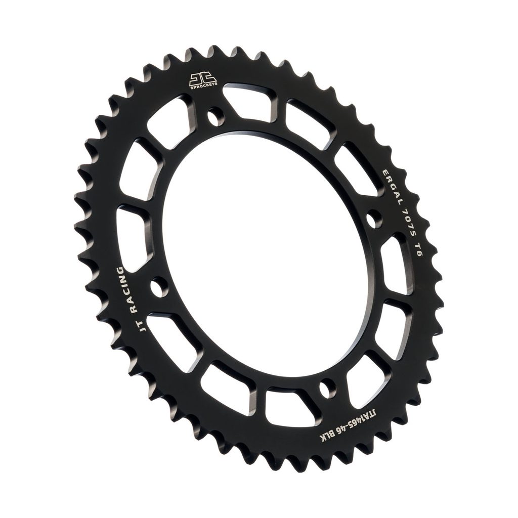 JT používá výhradně ty nejkvalitnější materiály. Pro závodní lehké rozety je to hliníková slitina letecké kvality 7075-T6, pro přední pastorky extrémně pevná slitina SCM420 (chrom-molybdenová ocel) a pro zadní ocelové rozety jako jediný výrobce používá ultra odolnou uhlíkovou ocel C49.