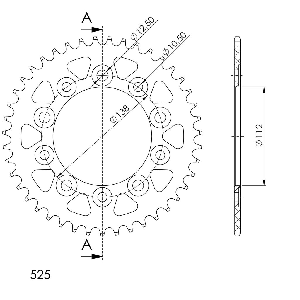 Hliníková reťazová rozeta SUPERSPROX RAL-1304:43-BLK čierna 43T, 525