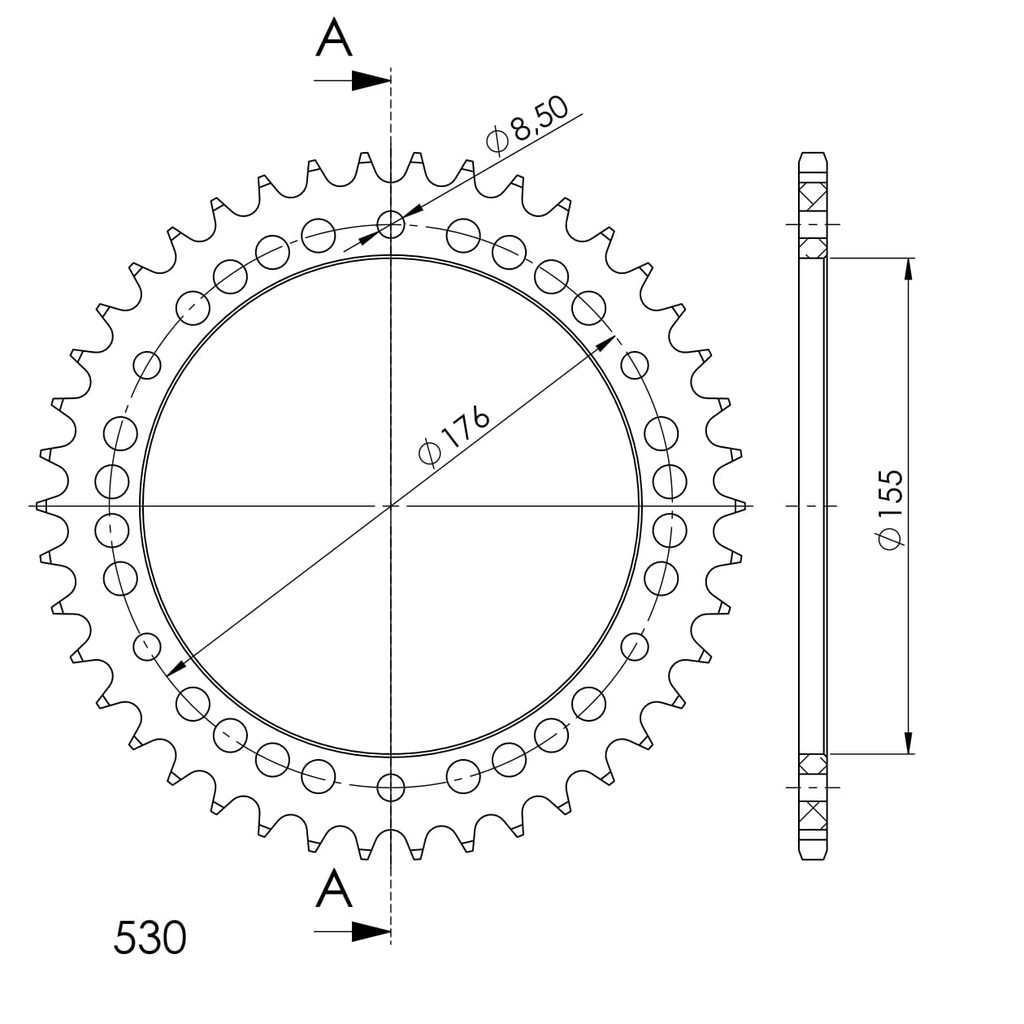 Hliníková reťazová rozeta SUPERSPROX RAL-2011:42-BLK čierna 42T, 530