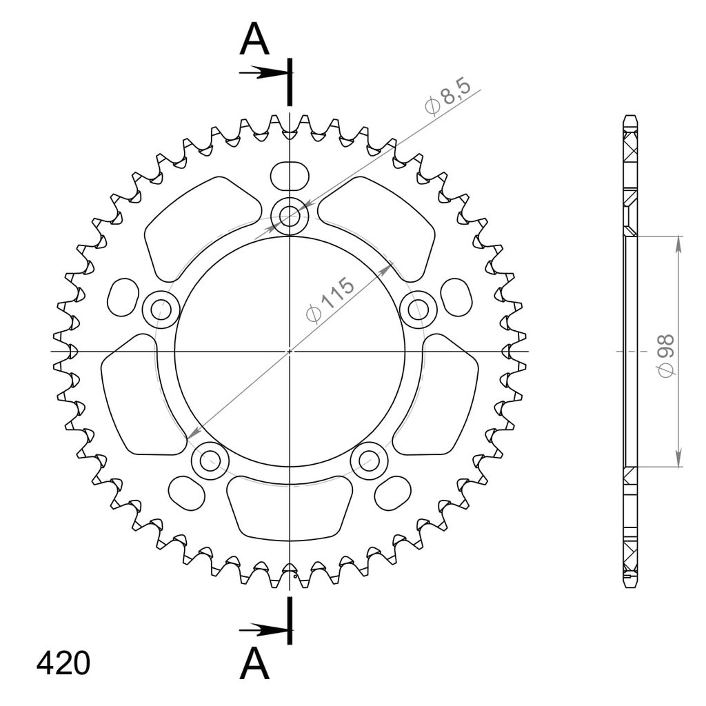 Hliníková reťazová rozeta SUPERSPROX RAL-4:48-SLV strieborná 48T, 420