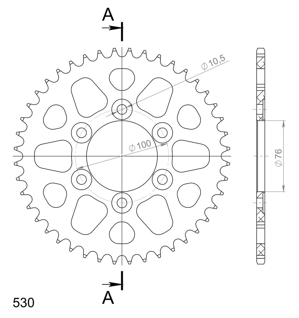 Hliníková reťazová rozeta SUPERSPROX RAL-816:44-BLK čierna 44T, 530