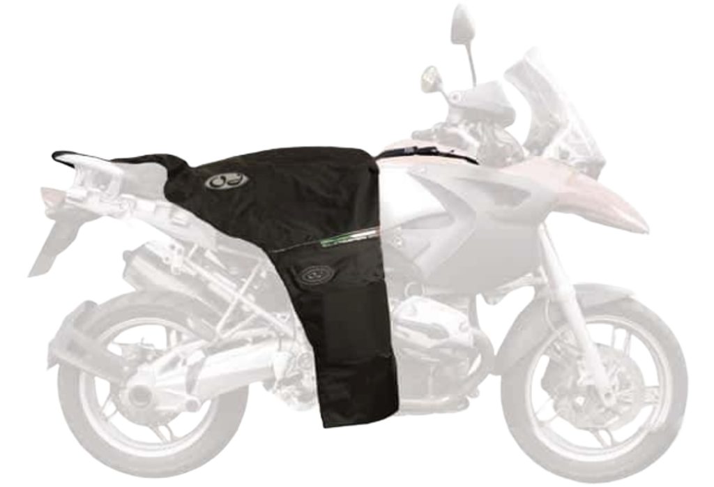 Univerzální černý kryt na nohy, určený pro motocykly. Ochrání před deštěm a chladem i za nejhorších povětrnostních podmínek. Jde o vodotěsnou ochranu, která je dokonalým doplněním výbavy každého motorkáře. Složený zabírá velmi málo místa a je možné ho vozit neustále s sebou.
