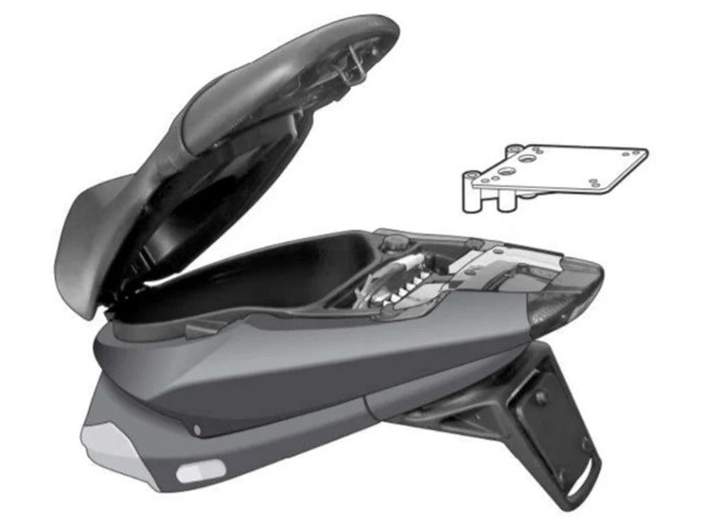 K upevnění vrchního kufru SHAD na motorku stačí namontovat tuto montážní sadu, plotna je vždy součástí kufru (kromě kufrů TR48/TR37).