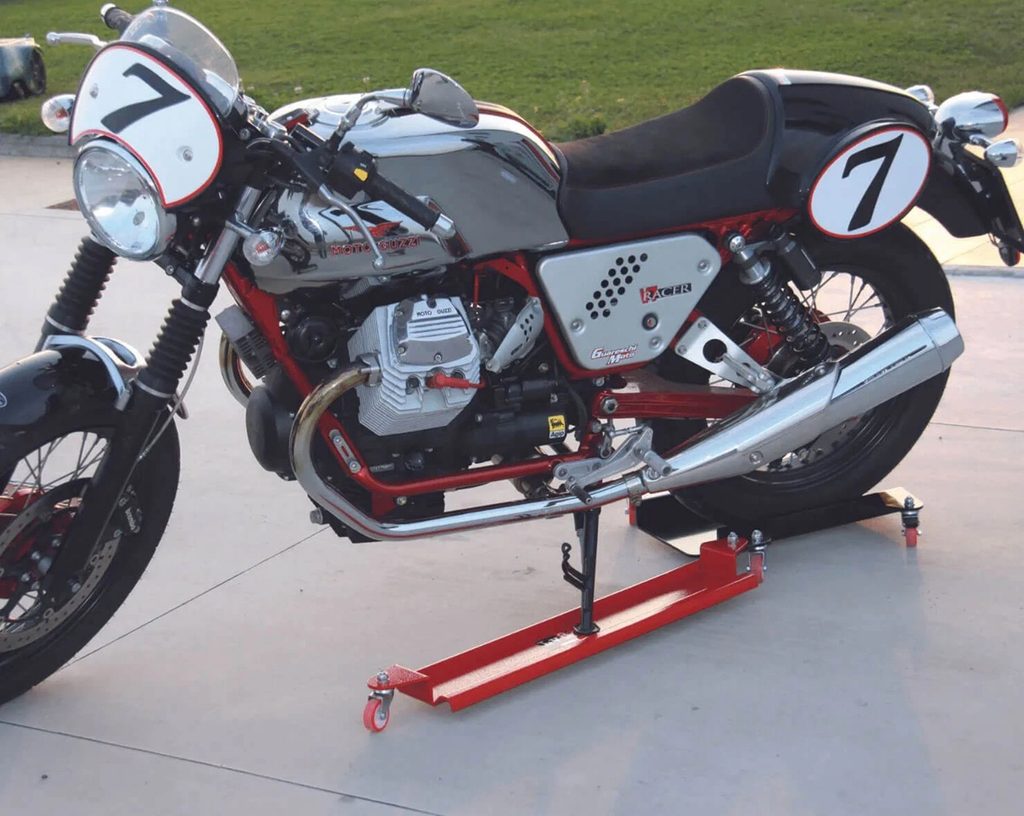 Pojezdová podložka pod zadní kolo s protiskluzovou gumovou vrstvou pro použití se všemi motocykly a skútry vybavenými středovým stojanem. Umožňuje pohyb vozidla ve všech směrech, což usnadňuje parkování v garážích a na těsných prostorech.