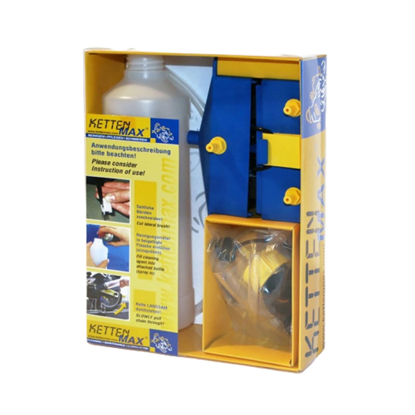 Pohodlné, čisté a rychlé řešení pro všechny motorkáře, kteří chtějí bezvadně očistit svůj řetěz před jeho opětovným namazáním a nanesením vrstvy na čistý povrch. Pokud provádíte údržbu pravidelně (výrobci motocyklů doporučeno každých 500 až 1000km), prodloužíte životnost celé řetězové sady.