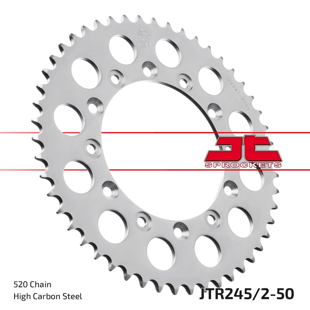 Ocelové zadní rozety JT Steel jsou vyráběny výhradně z nejkvalitnější uhlíkové oceli C49. Sortiment JT Steel nyní zahrnuje více než 2 500 dílů pro všechny motocykly a čtyřkolky (ATV).