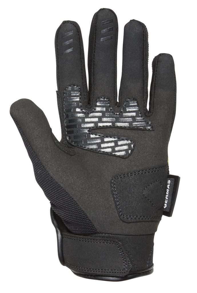 Krátké textilní rukavice se strečového materiálu se skvěle přizpůsobí pohybům ruky, takže neomezují jezdce. Díky materiálu, ze kterého jsou vyrobené, jsou dobře prodyšné. Všité chrániče a zesílení poskytují dostatek ochrany v případě pádu.