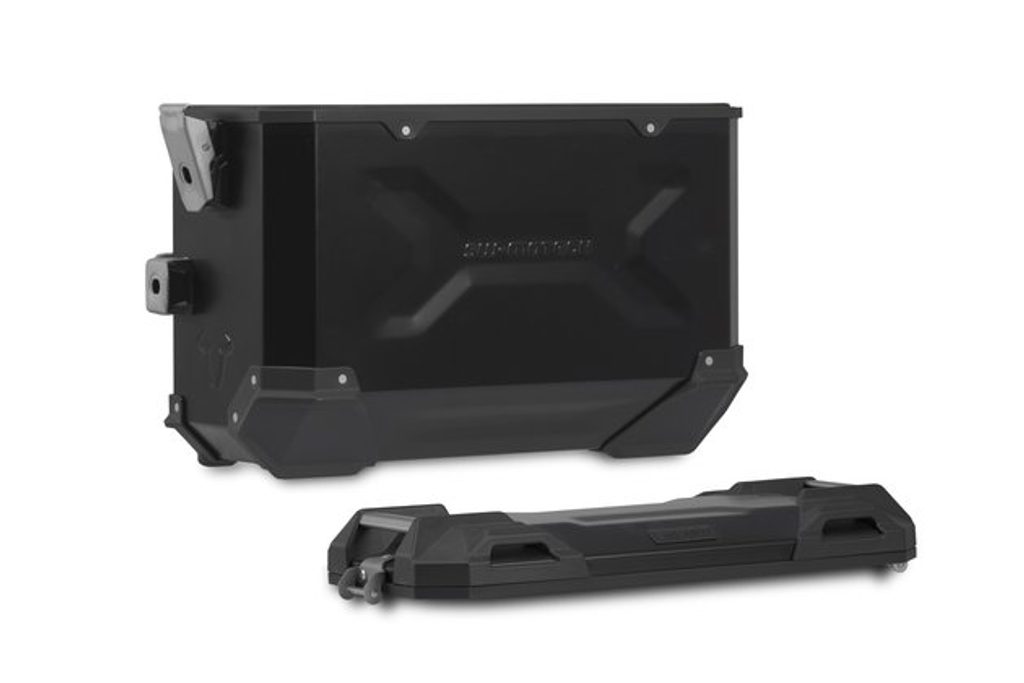 Odolná hliníková pouzdra TRAX ADV se cítí jako doma na každém úseku silnice: reliéfní vzory dodávají stabilitu svařovanému hliníkovému stěnovému materiálu o tloušťce 1,5 milimetru. Zcela odnímatelné víko s rukojetí z eloxovaného hliníku a rychloupínacími upevňovacími prvky usnadňuje nakládání a vykládání zavazadel motocyklu; zkosená boční hrana poskytuje vysokou světlou výšku při zatáčení. S tímto kompletním řešením máte všechny komponenty, které potřebujete k cestování s TRAX: dvě vodotěsná boční pouzdra TRAX ADV, dva odnímatelné boční nosiče SW-MOTECH, sada adaptérů, sada zámků, omezovač víka a ochrana proti krádeži za atraktivní cenu.