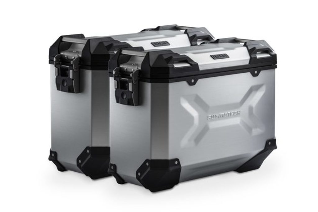 Odolné hliníkové kufry TRAX ADV se budou cítit jako doma na každém úseku silnice: reliéfní vzory dodávají 1,5 milimetru silný svařovaný hliníkový materiál stěn stabilitu. Zcela odnímatelné víko s rukojetí z eloxovaného hliníku a rychloupínacími prvky usnadňuje nakládání a vykládání motocyklových zavazadel; Zkosená boční hrana poskytuje vysokou světlou výšku při zatáčení. S tímto kompletním řešením máte všechny komponenty, které potřebujete k cestování s TRAX: dva vodotěsné boční kufry TRAX ADV, dva odnímatelné boční nosiče SW-MOTECH, sadu adaptérů, sadu zámků, omezovač víka a ochranu proti krádeži za atraktivní cenu.