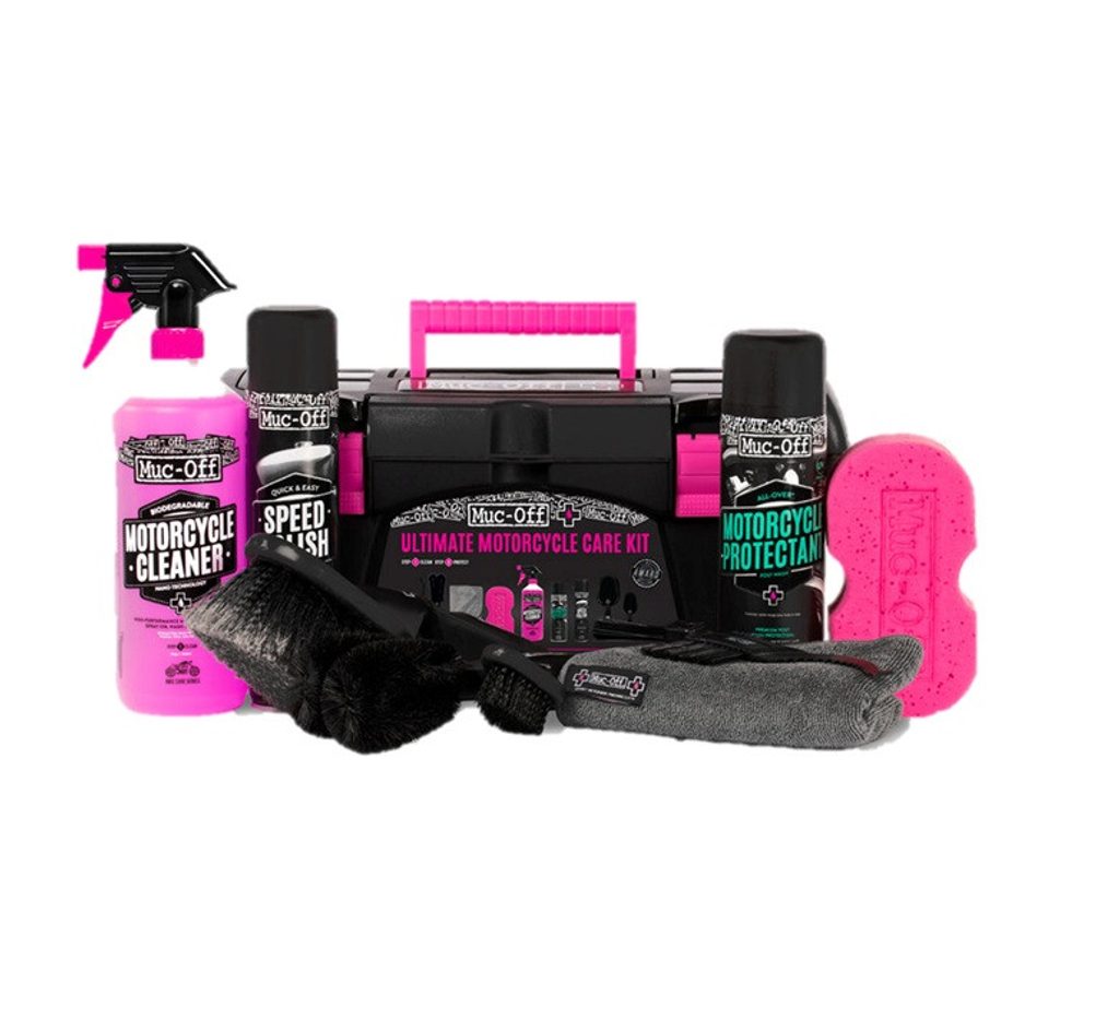 Sada Muc-Off Ultimate Motorcycle Cleaning Kit pokrývá všechny základy čištění, ochrany a mazání vašeho motocyklu. Tato sada není specifická ani pro konkrétní styl jízdy a obsahuje všechny základní potřeby pro jízdu na silnici i v terénu. Tato sada, která obsahuje náš oceňovaný čisticí prostředek na motocykly, houbičku z mikrovlákna, měkký mycí kartáč, kartáč na detailní údržbu, dvouhrotý kartáč, kartáč s drápky, utěrku z mikrovlákna, ochranný prostředek na motocykly a leštěnku na motocykly Speed Polish, je ideálním dárkem k narozeninám nebo Vánocům pro každého fanouška motocyklů!