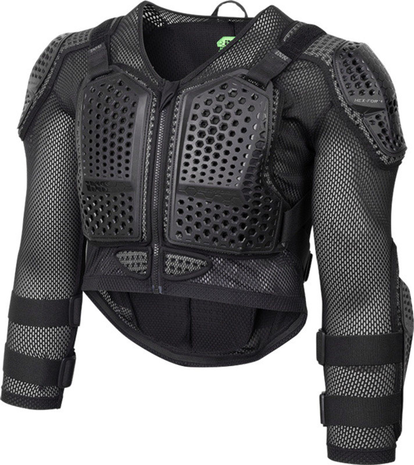 Hex Series Upper Body Protective kombinuje vnější povrch s nízkým třením a vnitřní vrstvu pohlcující nárazy do jedné ergonomicky tvarované skořepiny. Ultrakomfortní zapínání na zip je navrženo s důrazem na vaši bezpečnost – tvrdá skořepina zajišťuje ochranu při skluzu bez zbytečného tření, zatímco 3D navržený šestiúhelníkový profil HeX-Matter absorbuje a rovnoměrně rozkládá energii nárazu. Díky flexibilní konstrukci umožňuje plnou volnost pohybu a poskytuje nastavitelnou ochranu v exponovaných zónách, kde je jí nejvíce potřeba. Navíc s ventilovaným síťovaným tělem a středovým zipem po celé délce zůstanete v pohodlí i při dlouhé jízdě.