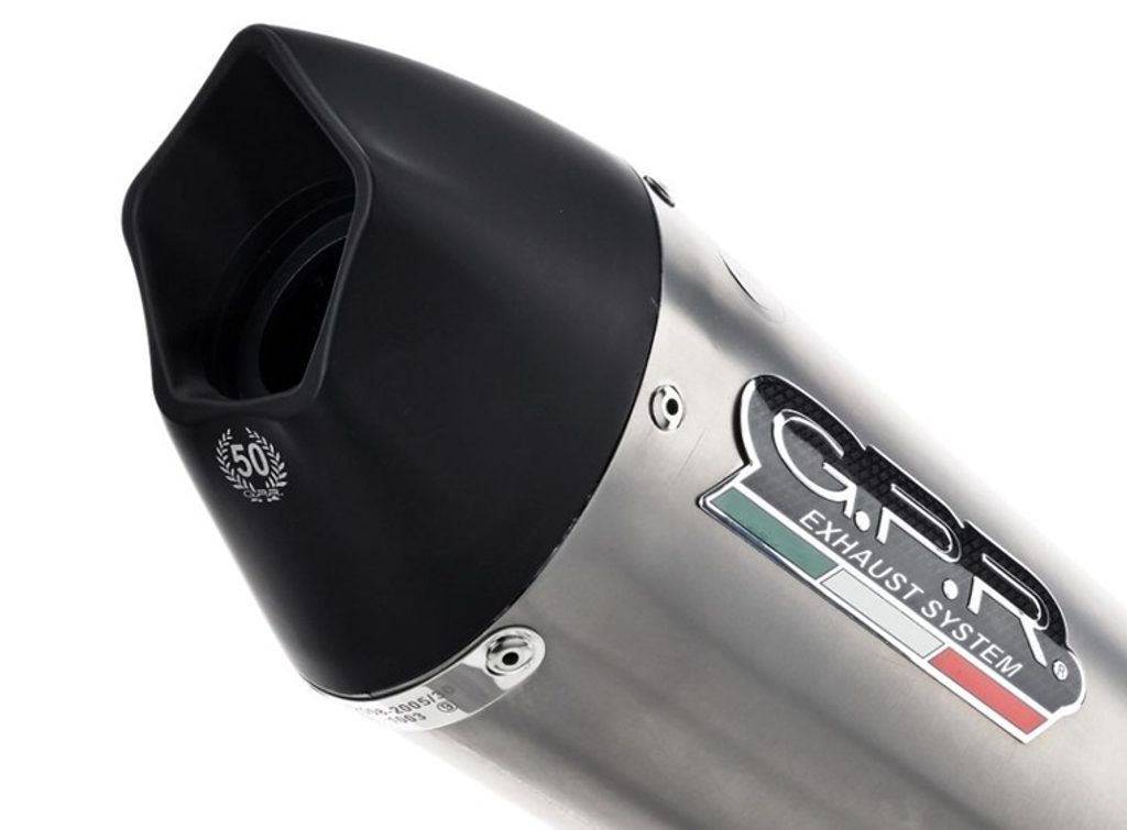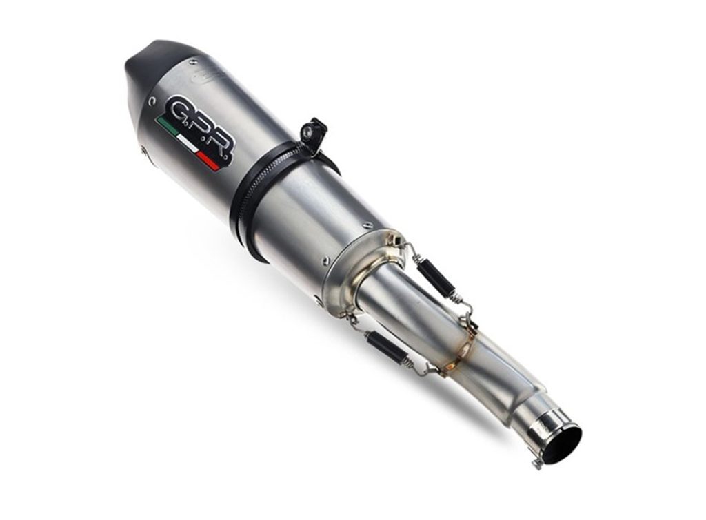 Nový GPR Grand Prix Evo Titanium - tlumič je kuželový, se speciálním tvarem, který začíná průměrem 90 mm a rozšiřuje se až na obvod 130 mm, s délkou závislou na motocyklu, pro který je určen. Má titanový plášť v přírodní barvě, černé CNC obráběné koncovky s pětiúhelníkovým výstupem a db-killer.