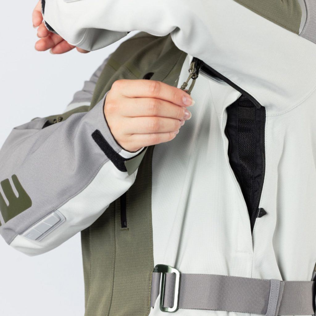 Vylaďte si střih pomocí nastavitelné šířky v pase, na manžetách a rukávech. Dvoucestný hlavní přední zip po celé délce posouvá použitelnost na další úroveň.