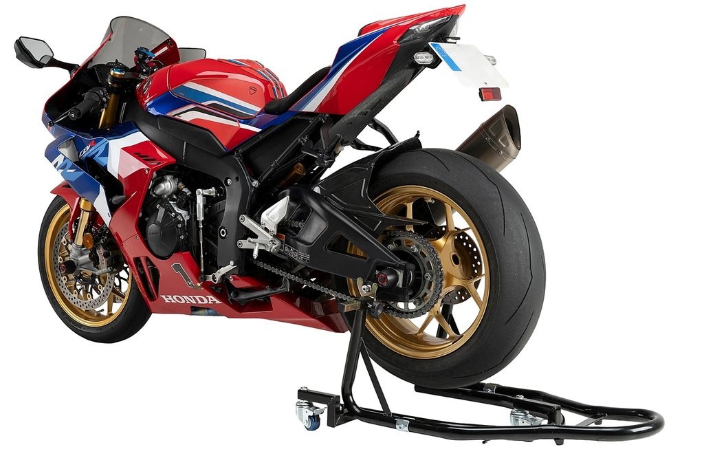 Manévrovací stojan je ideálním nástrojem pro ty, kteří potřebují zvednout zadní kolo a pohybovat motocykl s naprostou lehkostí a kontrolou. Je navržen pro pohodlí a přesnost a umožňuje snadné přemisťování motocyklu i ve stísněných prostorech.