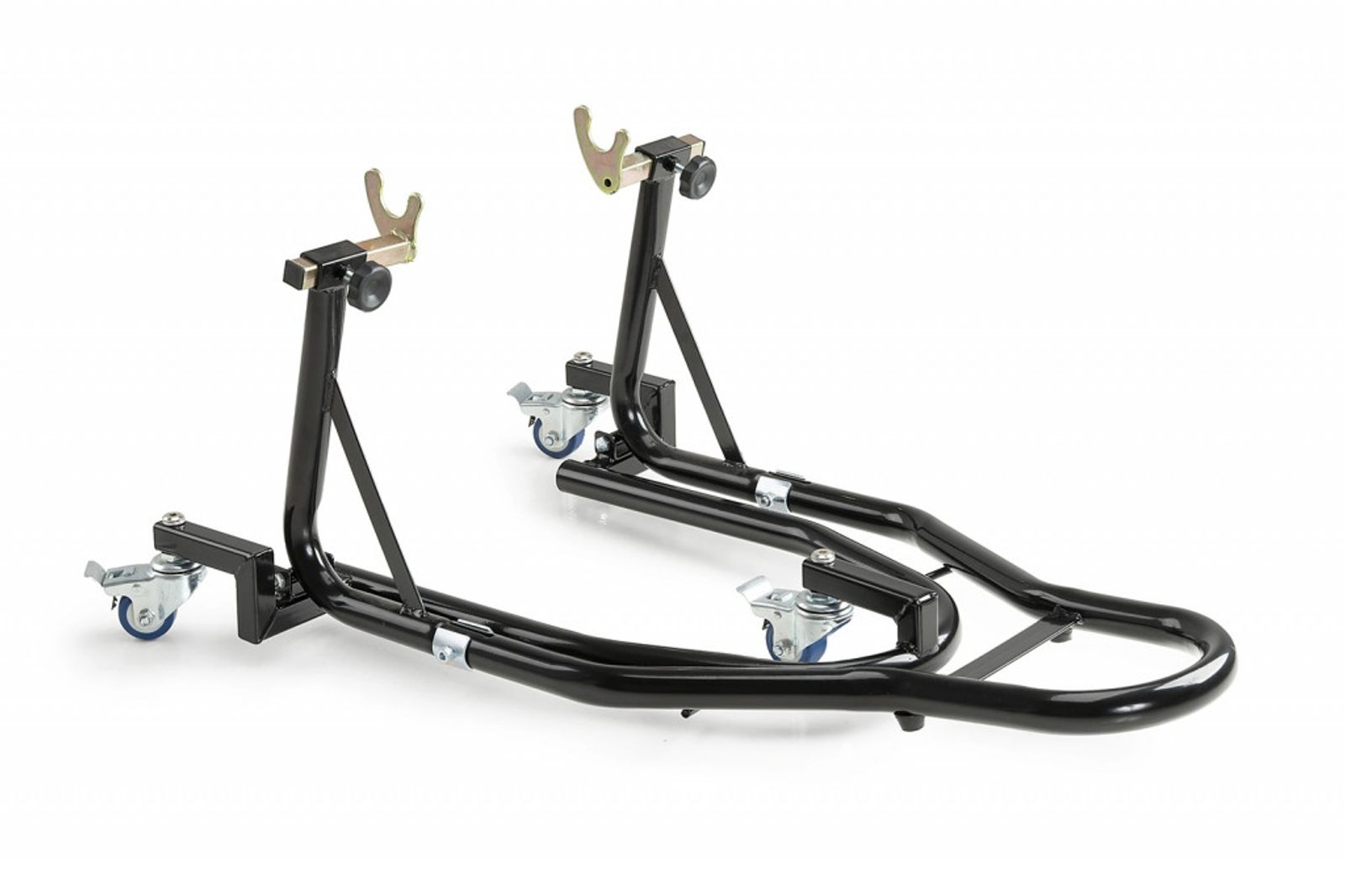 Díky čtyřem hlavním kolečkům, speciálně navrženým pro lepší mobilitu, poskytuje tento stojan plynulou, stabilní a bezvibrační manipulaci, což z něj činí nezbytný doplněk pro udržení motocyklu vždy pod kontrolou.
