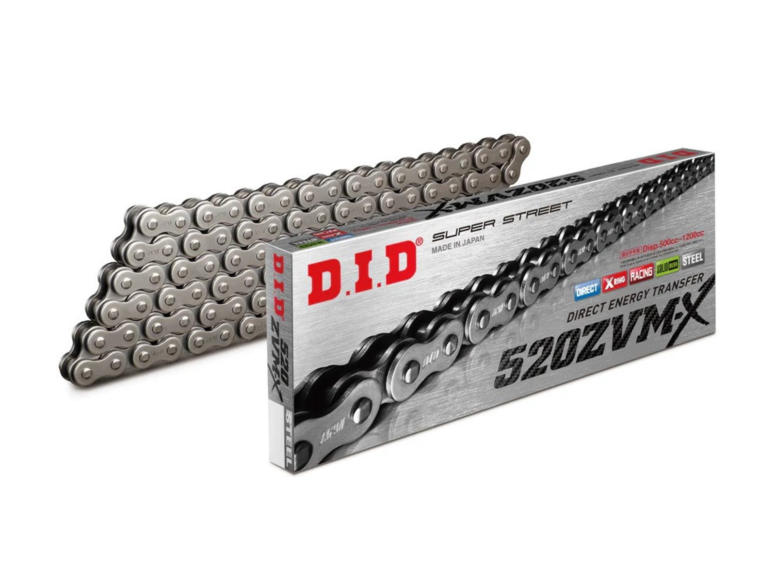 Řetěz D.I.D ZVM-X Series využívá patentované těsnění X-Ring®, které zajišťuje vyšší pevnost než řada VX a je určen pro silné motocykly s vysokým krouticím momentem a výkonem. Díky kroucenému tvaru X-Ring® těsnění lépe těsní a čtyři styčné body snižují ztráty výkonu.